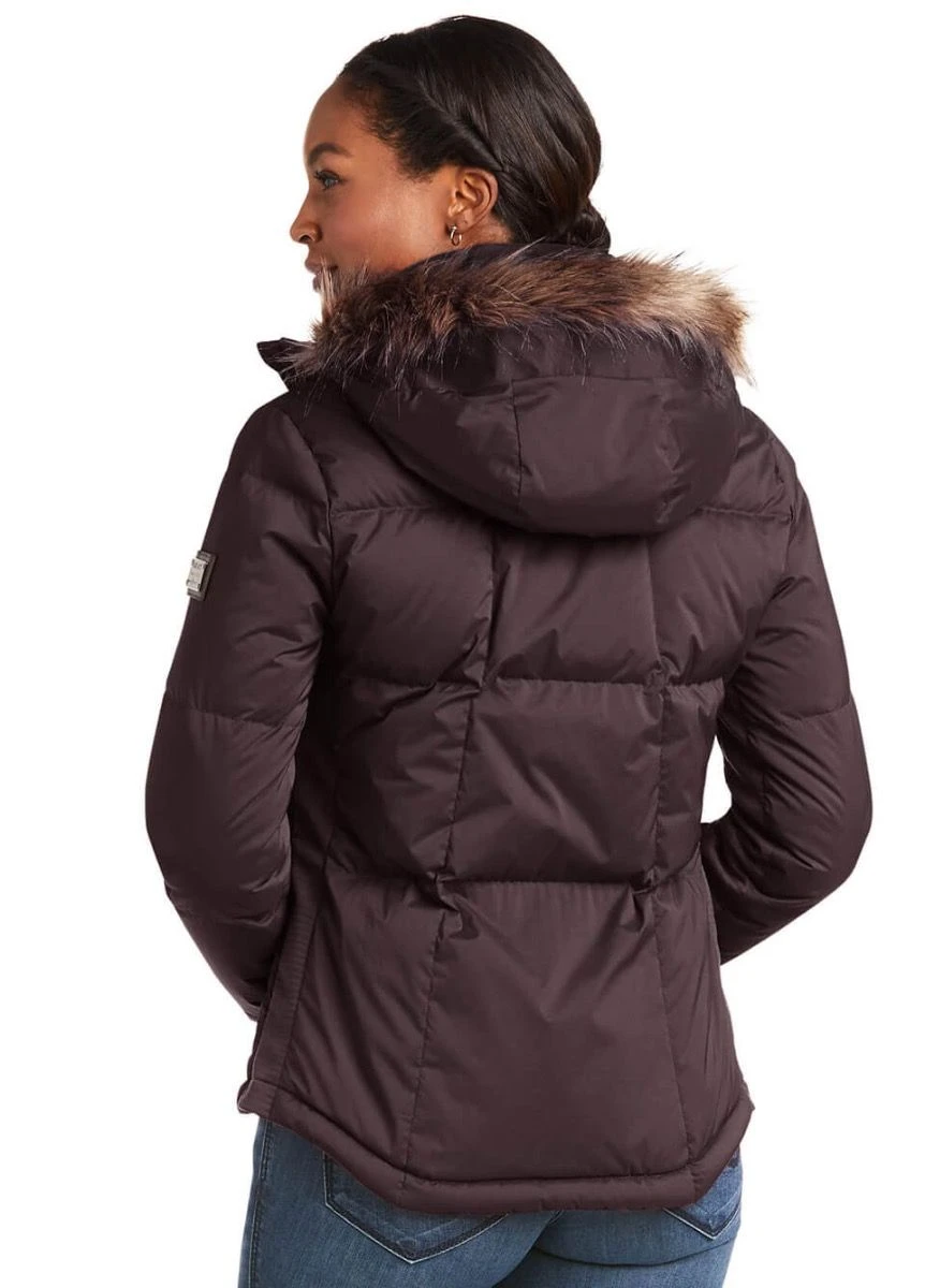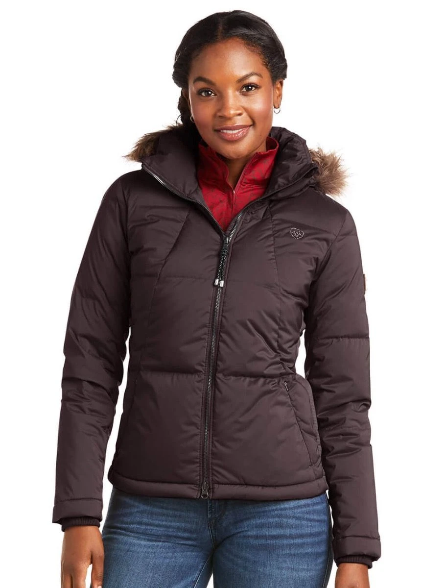 The Ariat Altitude Down Jacket is expertly engineered for protection against the elements. It features an eco-friendly finish to keep out wind and rain and responsibly-sourced down for low-bulk warmth. Sleek tech styling with stretch panels to allow ease of movement. Cantilevered hood with single toggle is removable, making it adaptable for riding.