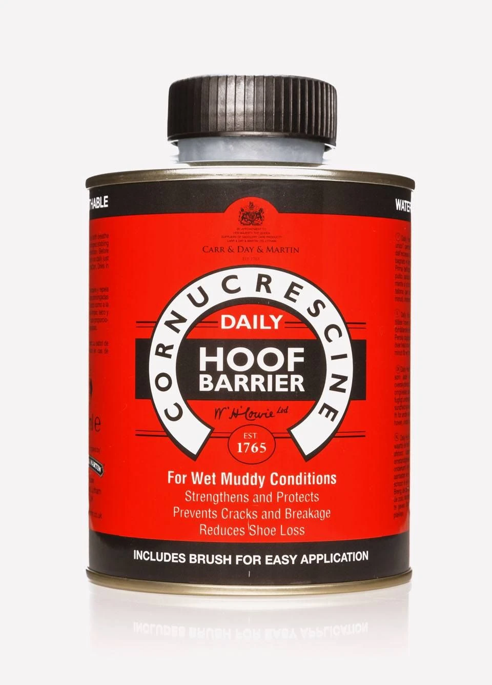 Carr & Day & Martin Cornucrescine Daily Hoof Barrier is step 3 option 3 of the Cornucrescine 3 step system for total hoof care. (Choose from options: Cornucrescine Tea Tree Hoof Oil, Daily Hoof Moisturiser, Daily Hoof Barrier or Daily Hoof Dressing as the 3rd and final step)