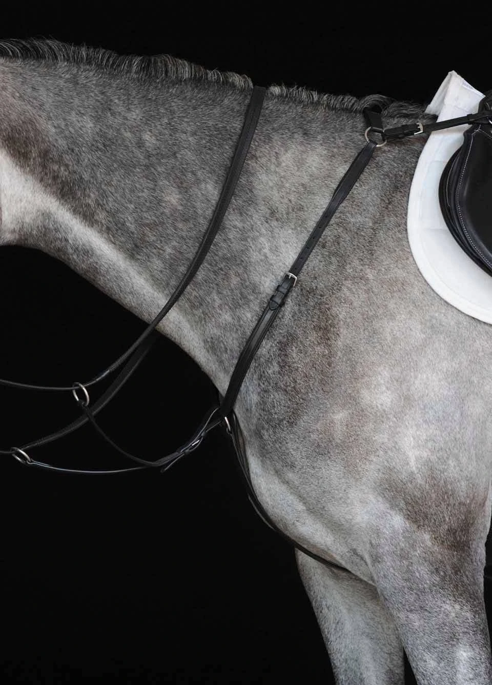Particularly helpful for horses who tend to hold their heads very high, or like to throw their heads back whilst being ridden. The hunter breastplate with running martingale attachement prevents this, as well as holding your saddle in place and helping to stop it from slipping backwards. Ideal for eventing and showjumping horses, this breastplate from collegiate does its job perfectly, and is made from high quality performance leather. It is also completely adjustable, to ensure you get the perfect fit for your horse or pony! It is ideal for everyday and competition use.