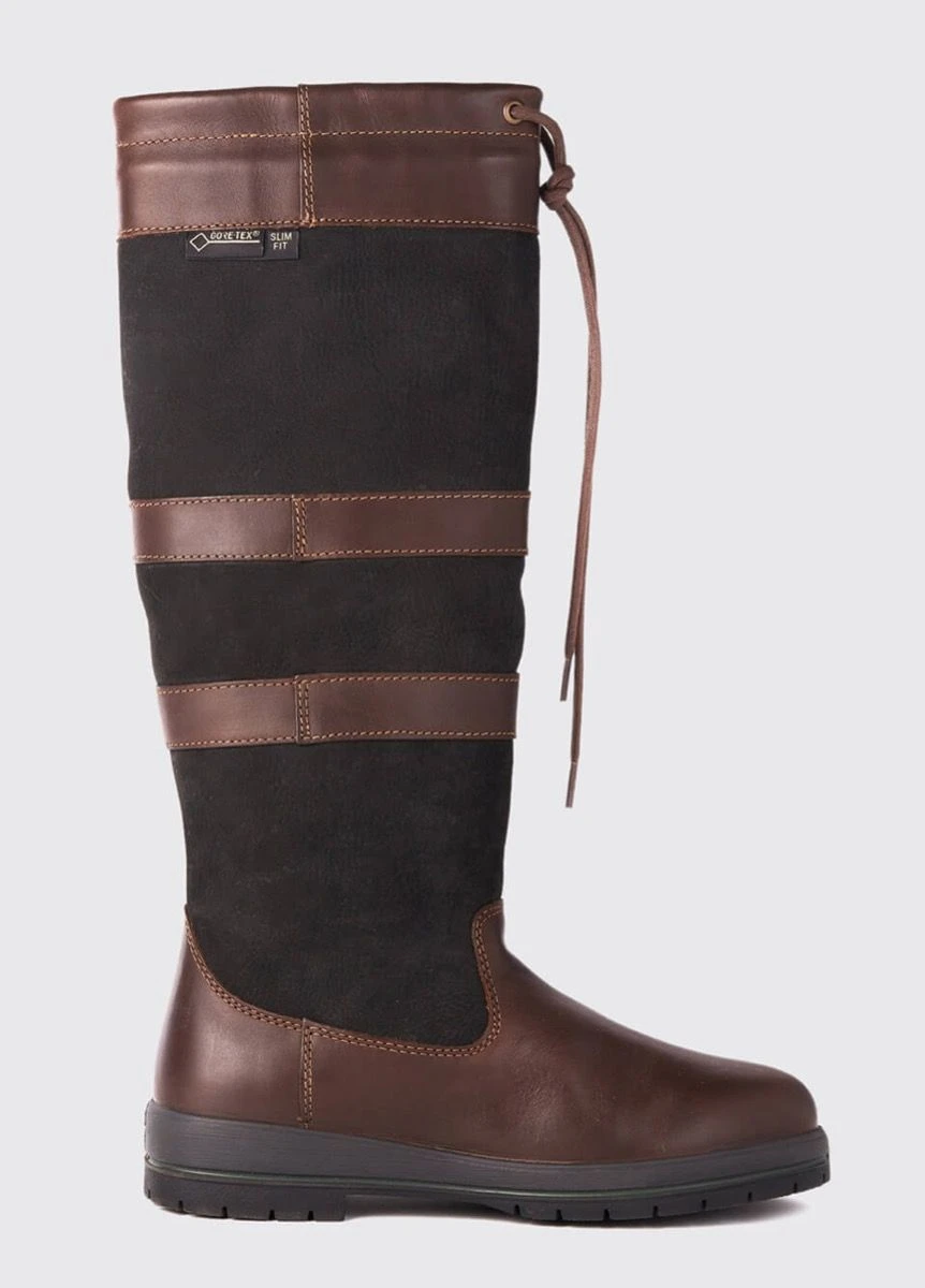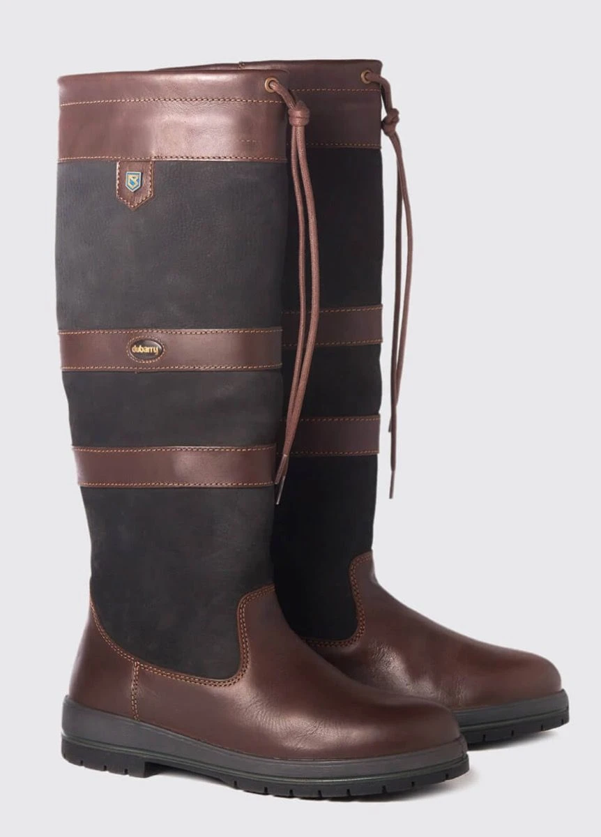 Slim Fitâ„¢ narrower calf fitting of the iconic Dubarry Galway leather country boot, a warm, waterproof and breathable staple for country-lovers. Made with DryFast-DrySoftâ„¢ leather and lined with GORE-TEX, they have extremely comfortable and shock absorbing soles ideal for crossing rough and wet terrain. Available in contrasting colours and materials, the Galway boot looks great with trousers or a skirt and will see you from muddy country walks, to a smart day at the races, festivals and beyond. Narrower calf fit version of the regular fit galway.