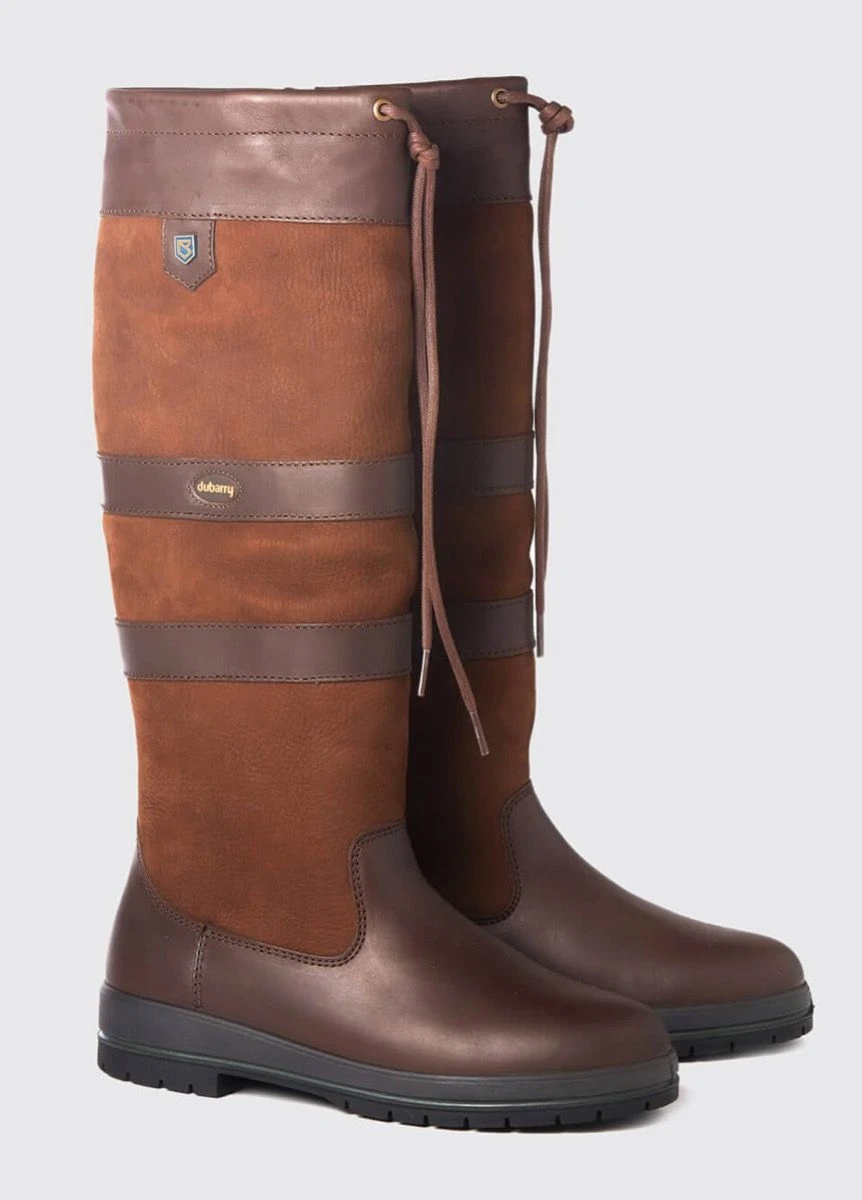 Slim Fitâ„¢ narrower calf fitting of the iconic Dubarry Galway leather country boot, a warm, waterproof and breathable staple for country-lovers. Made with DryFast-DrySoftâ„¢ leather and lined with GORE-TEX, they have extremely comfortable and shock absorbing soles ideal for crossing rough and wet terrain. Available in contrasting colours and materials, the Galway boot looks great with trousers or a skirt and will see you from muddy country walks, to a smart day at the races, festivals and beyond. Narrower calf fit version of the Regular Fit Galway