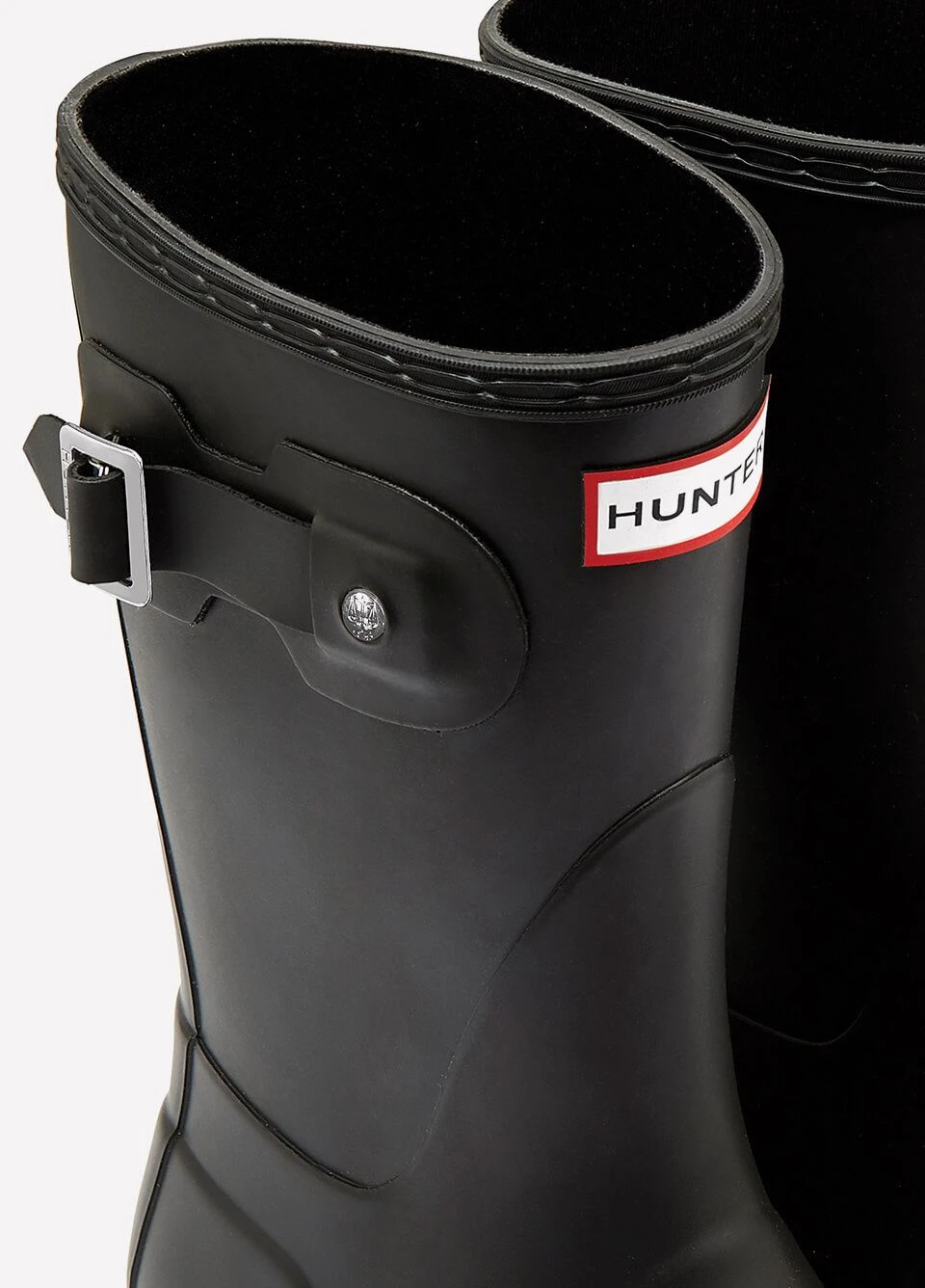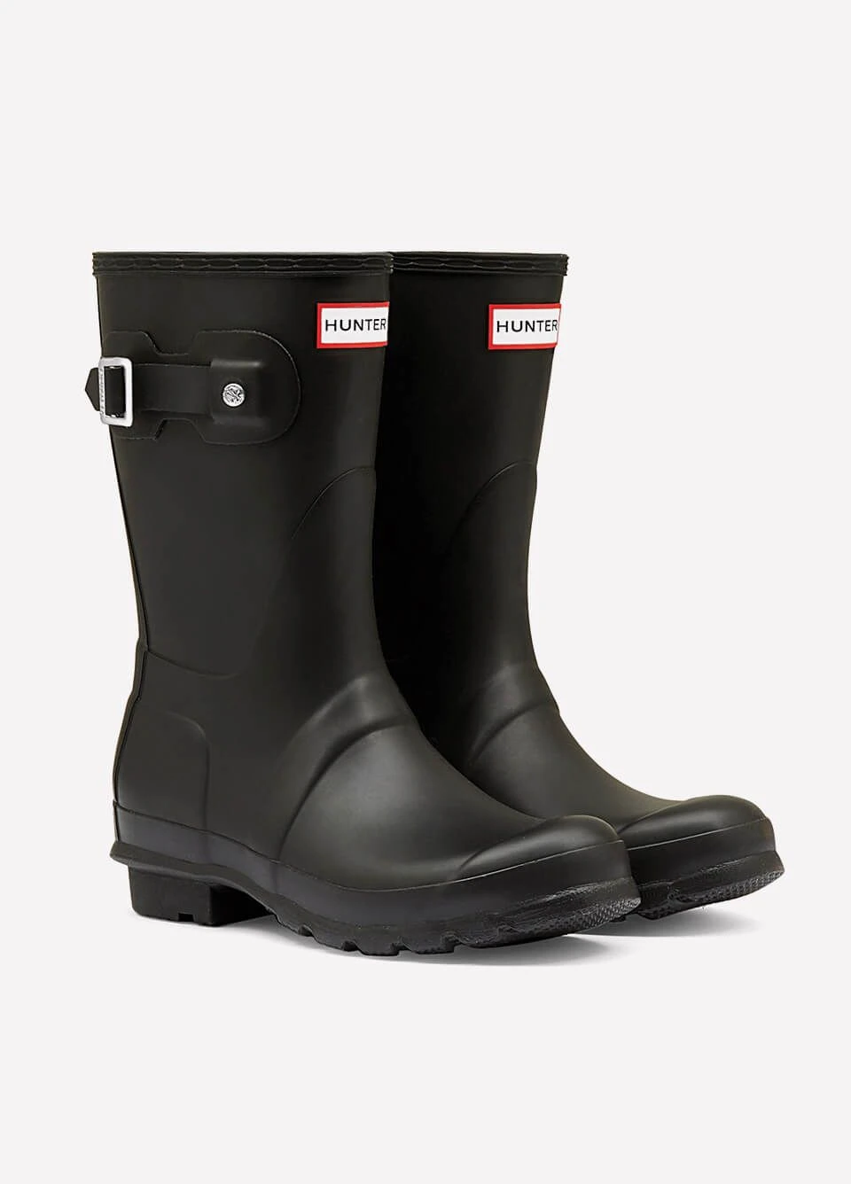 The Hunter Womens Original Short Wellingtons are a shorter version of the iconic original tall Hunter Welly. Featuring the Hunter Original tread pattern, and a comfortable polyester lining, this classic black waterproof boot is a rainy-day necessity.