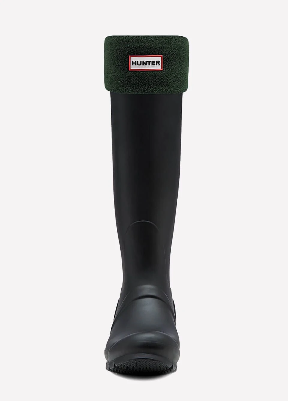Designed to fit comfortably inside the Original Tall Wellington Boot and enhance fit while adding comfort and warmth, these boot socks feature a black fleece leg and contrasting fold down cuff in dark green finished with the Hunter Original logo.