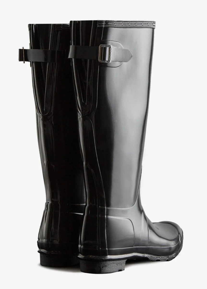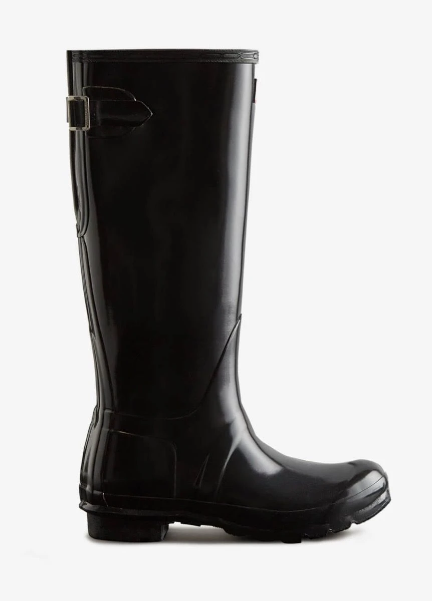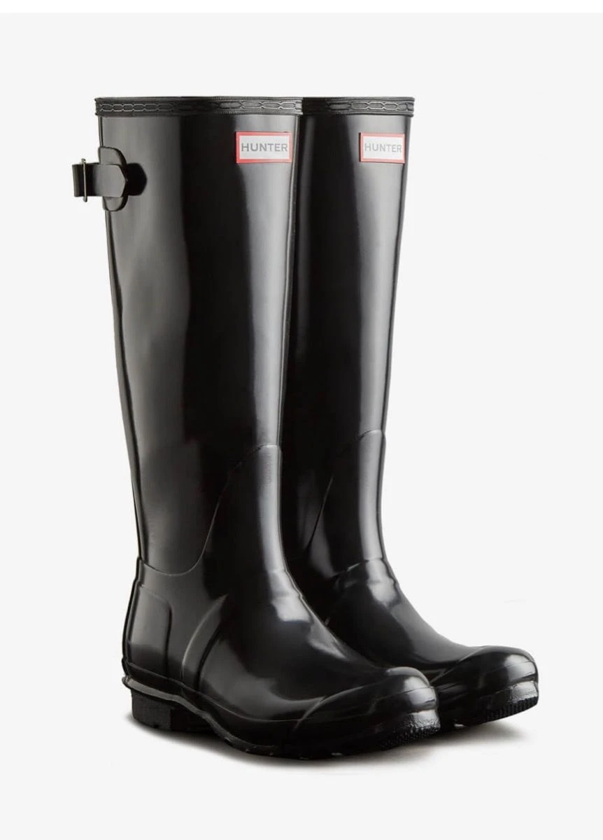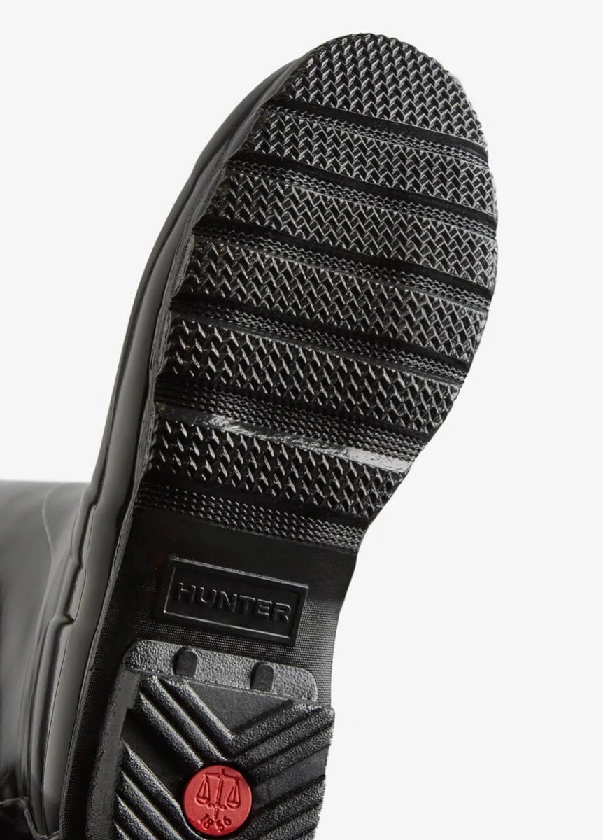 Designed for a flexible fit the Original Tall Adjustable Boot mirrors the iconic Original Tall with the addition of an expandable gusset at the back. Perfect for a wider calf, these glossy wellies in classic black offer ease of movement and adjust from the traditional tailored Hunter fit to a more relaxed shape when the gusset is fully extended. Handcrafted from natural rubber, the Original Adjustable boot is fully waterproof with a comfortable polyester lining and the signature Hunter Original tread.