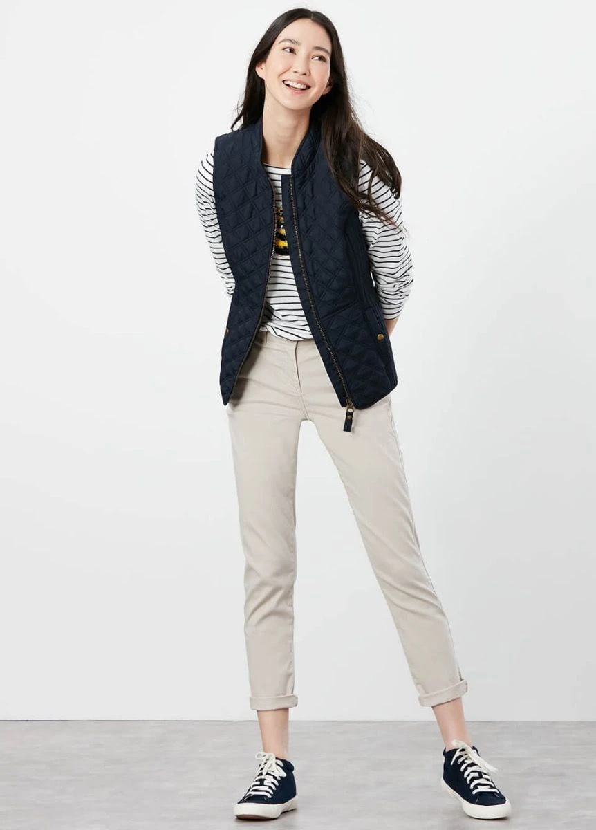 Our quilted gilets are an outerwear essential, perfectly made for popping into town or strolling through fields with the dog. This all-year-round layering piece has diamond quilting, a zip through fastening, welt pockets with exposed metal poppers and an elasticated back channel. For a shape that’s as flattering as it is comfortable there’s fitted side panels down each side too.