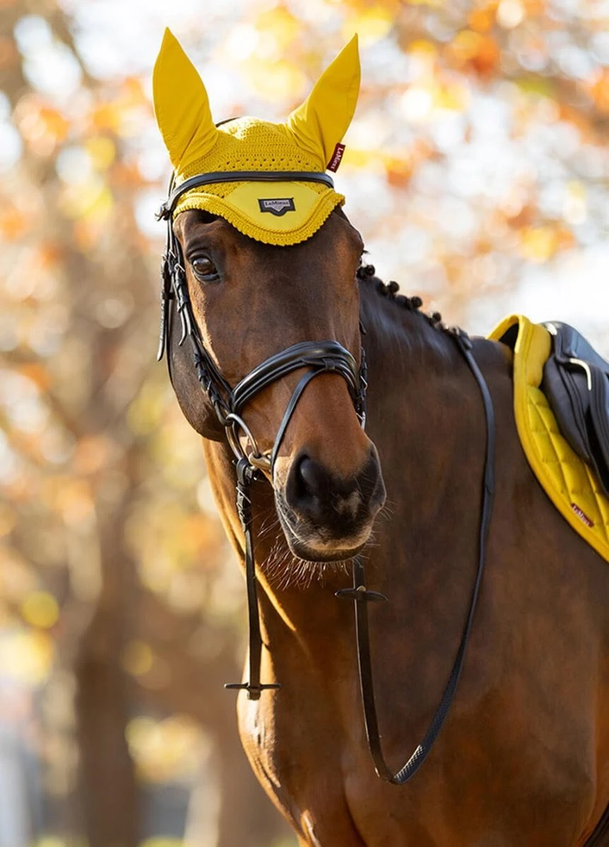 Supporting the signature LeMieux Loire embossed metal motif these luxurious fly hoods are a stylish addition to the collection. Beautifully made from three-way hand knitted crochet with a luxurious satin fabric front piece and soft stretch Lycra ears.