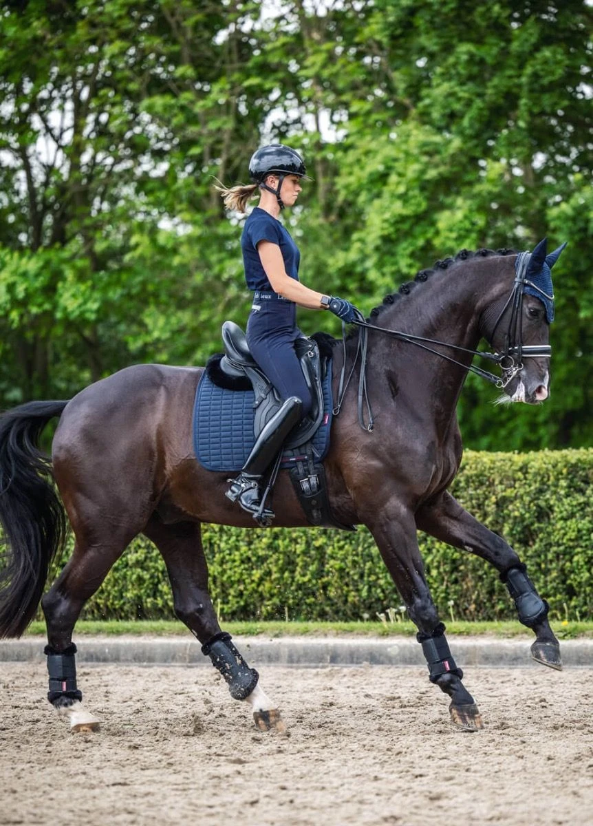 The LeMieux Self-Cooling Dressage Pads are made with the innovative FeelCool Ice material which has a cooling crystal kneaded into the weave. This is activated by moisture; the greater the moisture the greater the cooling effect! The crystals have incredible heat pick-up & transfer properties gradually absorbing and wicking sweat from the horse. Under extreme conditions, once dissipated a reverse rapid cooling effect is produced.