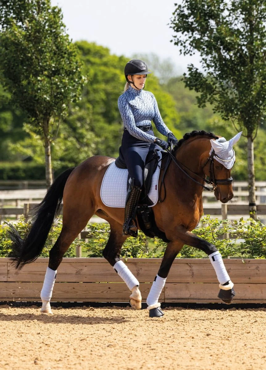 Now with new contrast piping detail and a PU leather girth protection area, the classic Dressage Saddle Pad from LeMieux is designed to fit a wide range of dressage saddles.Â