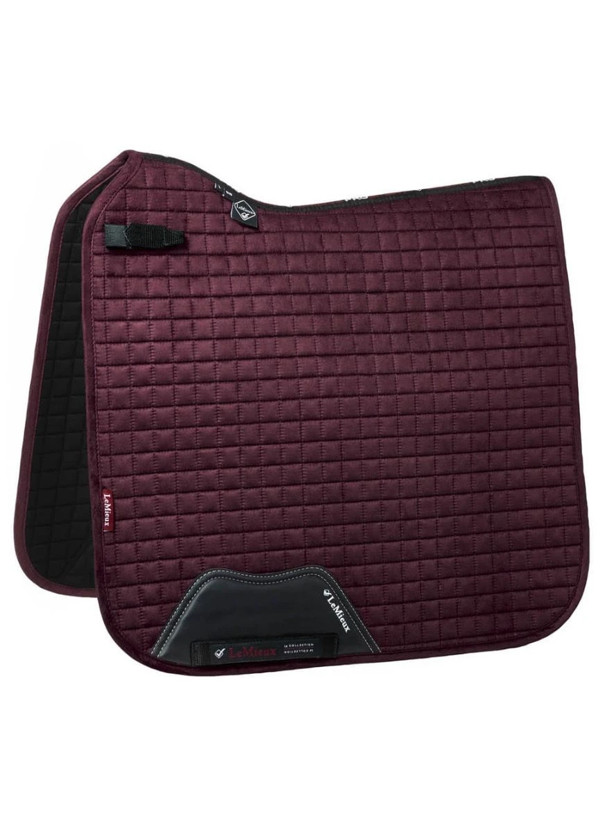 Now with our Super Soft Suede Binding & New PU Leather girth protection area, this beautiful suede Dressage square sets new standards in style & comfort. Now established as the iconic LeMieux look when combined with matching polo bandages and fly hoods there are colours to suit most horses and tastes. Designed to fit a wide range of dressage saddles with its high wither and elasticated D-Ring tabs . The luxurious suede top side with soft suede binding is complimented by a new super soft Bamboo lining to absorb & control sweat under the saddle and are beautifully comfortable and secure – minimising friction.