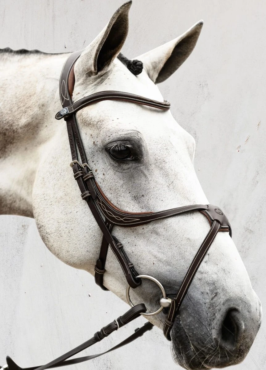 The Athens is a bridle where you at first glance may think it has a classic figure-eight/mexican noseband, but when giving it a closer look discover small details that put the one of a kind bridle at a completely new level