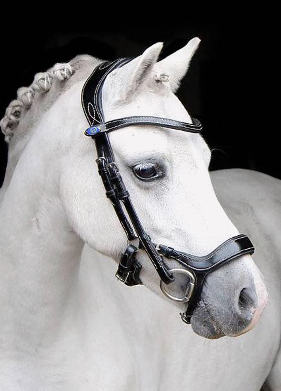 The cheek pieces have the PS of Sweden patented and selectable elastic Cradles™, which allows the bit to suspend in the horse’s mouth. This also helps to evenly the pressure across the neck. PS of Sweden elastic Cradles™ are designed so you can easily hook them on and off.