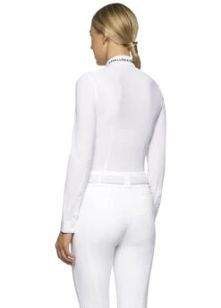 Cavalleria Toscana Pleated Long Sleeved Competition Polo Shirt – White