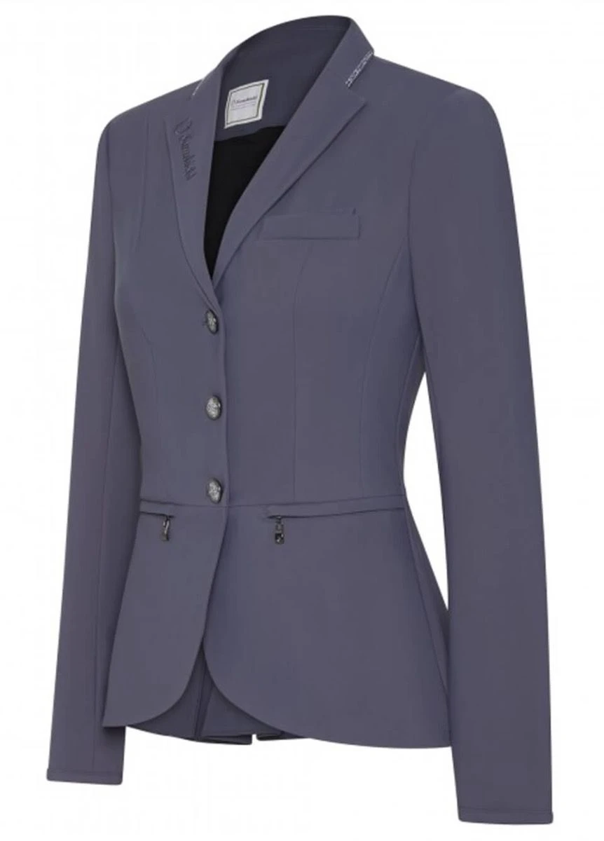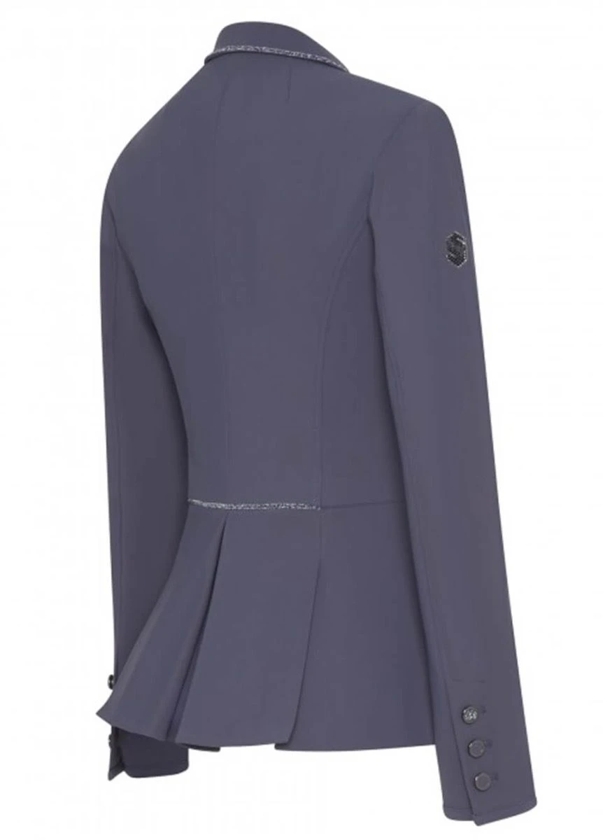 The Victorine Crystal Fabric competition jacket pairs breathable, high stretch fabric with an incredibly flattering design thanks to the long fan finish on the reverse and shorter cut at the front, allowing the rider to feel and perform at their best. Swarovski Crystal Fabric edges the collar, whilst the Swarovski buttons hide an internal zipper which enhances comfort and and provides excellent fit. It’s also easy care, machine washable at 30’C and is made with EPD Certification, making it environmentally friendly.