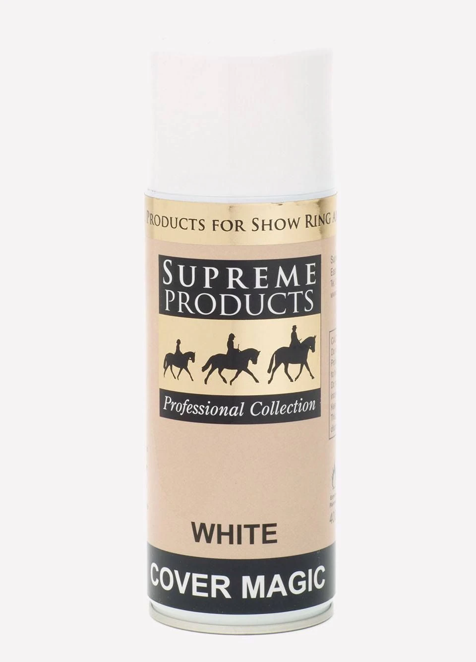 Cover Magic from Supreme is a best selling wonder product, that has always been a favourite amongst our showing customers! A simple to use spray that is mainly used to cover marks and scars ready for entering the show ring, it can also be used to add definition and enhancement to small areas of coat, and works wonderfully when used alongside some Supreme Sparkle. Its really easy to apply, although we would advise using it sparingly, all you need to do is spray a small amount from a difference, or for more control over how much is applied, spray it onto a soft cloth first, then apply. Cover Magic comes in Black, Brown and White to ensure it looks lovely on your horse!Â