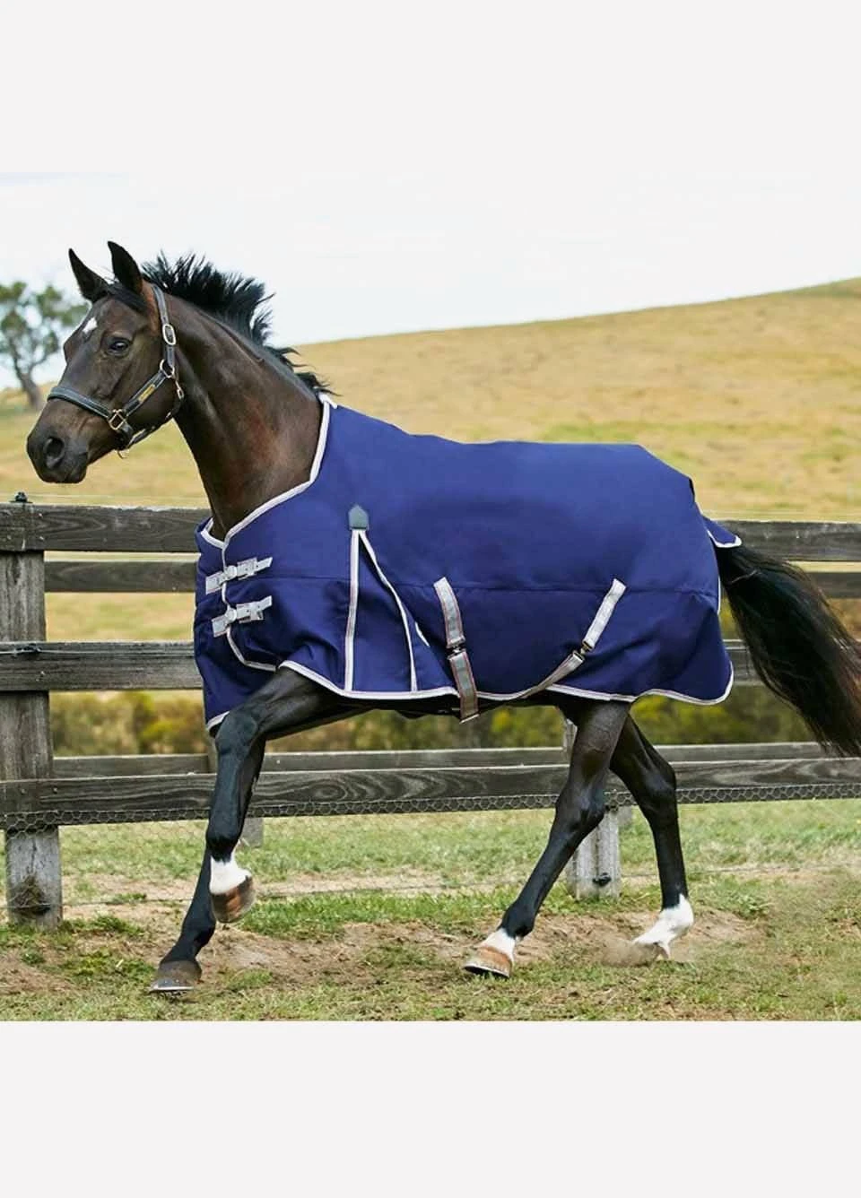 Weatherbeeta have put in their traditional shoulder gusset which we feel will broaden it’s appeal. It has adjustable and removable leg straps, two buckle fastenings at the front, a standard tail flap and cross surcingles.